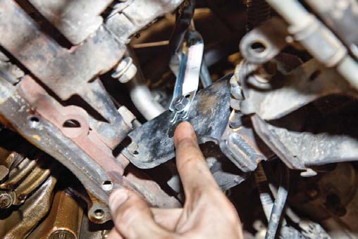 20. Remove dipstick bracket hardware.