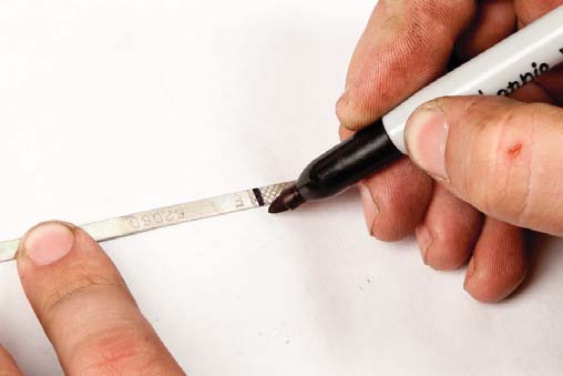 Use the set screw to make the same type of mark you