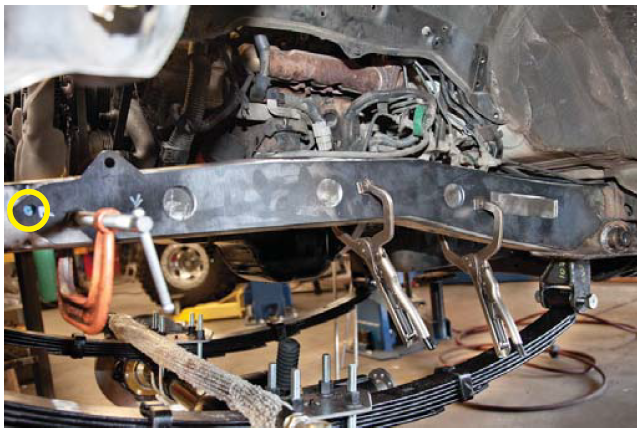 hole on the spring perch and install u-bolt flip kit as