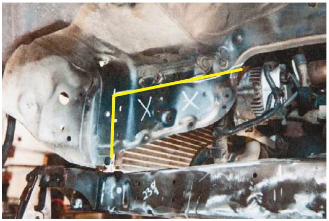 8. Cut the inner support plate of the body mount 1/2 of the