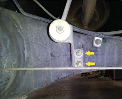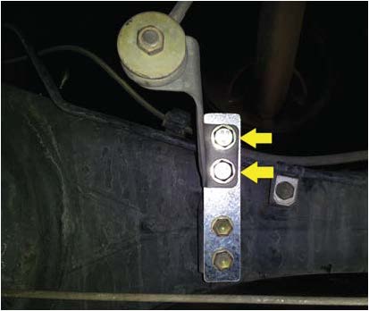 3. Using a 12mm socket, remove the (2) M8 bolts holding the Brake Proportioning Valve Bracket to the Rear Axle. Save the stock M8 bolts for reinstallation.