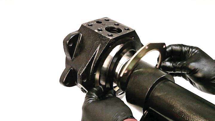 12. Install the one-piece metal retaining ring into the slot on the back of the knuckle.