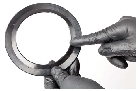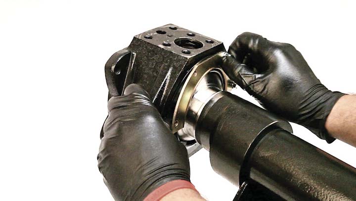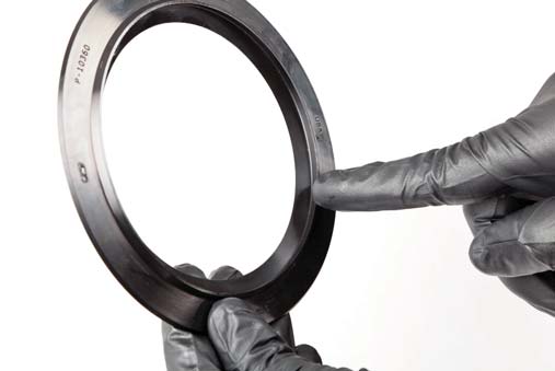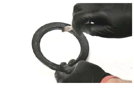13. Install the Trail Safeâ„¢ Knuckle Ball Wiper Seal over the one-piece metal retaining ring, trapping the ring in between the knuckle and the seal.