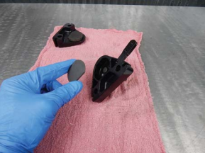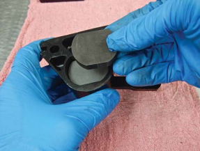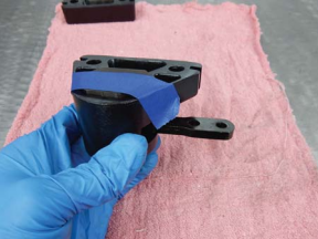 Step 9: Install the pad and secure the pad, plate, and pin in place using masking tape.