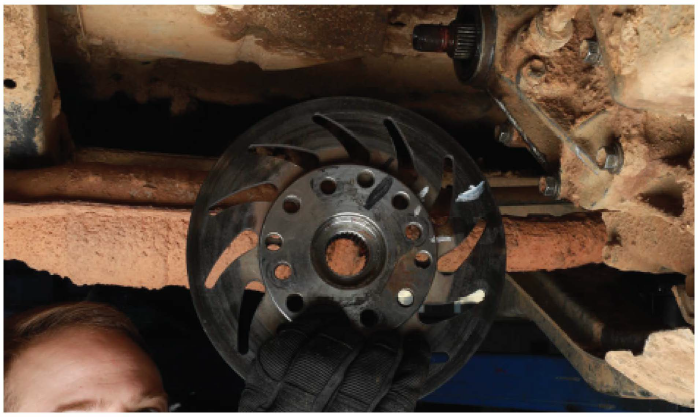 14. Verify that the driveshaft and the rotor can freely rotate with minimal drag from the brake caliper. If you cannot rotate the driveshaft by hand loosen the adjustment screw on the brake caliper and check again.