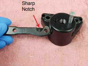 Tech Tip: It may be necessary to recess the pin using a hammer and punch. This shows the lever and pin properly installed.