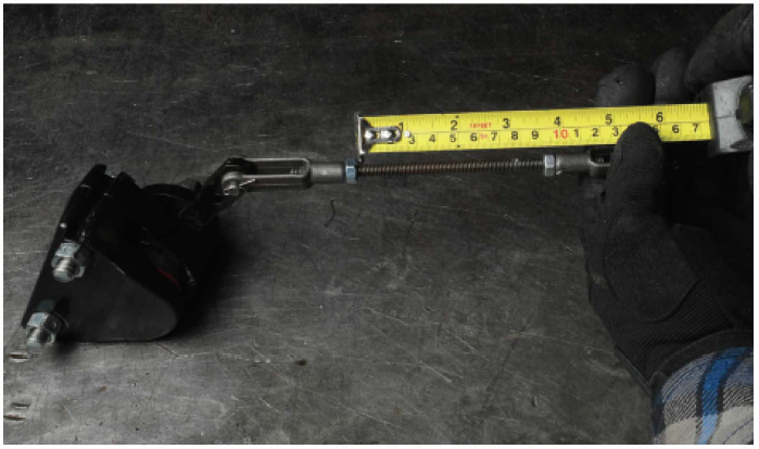 8. Assemble the brake caliper, all thread rod, jam nuts, and clevis joints as shown. It may be necessary to switch the side of the brake caliper lever to the side shown. If necessary, consult the Caliper Lever Reorientation instructions available on the All-Pro Off-Road website. Adjust the length of the all thread rod until there is about 3.5" between the two jam nuts. Do not tighten the jam nuts yet.