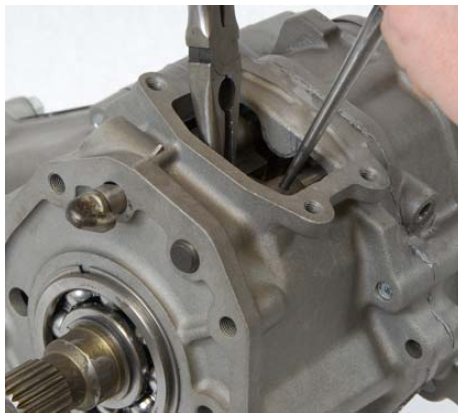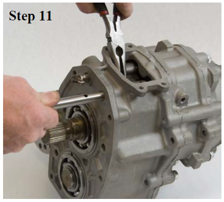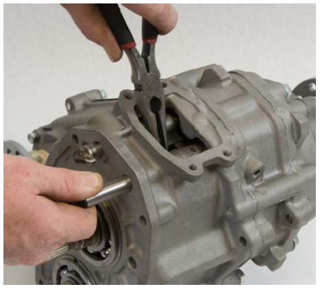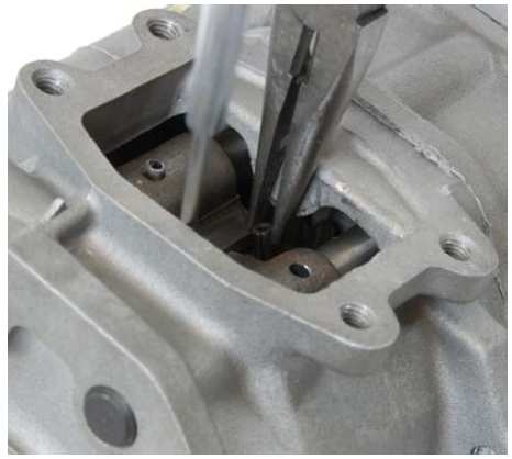 9. Still holding the needle nose pliers in place slide the shift rail out completely.