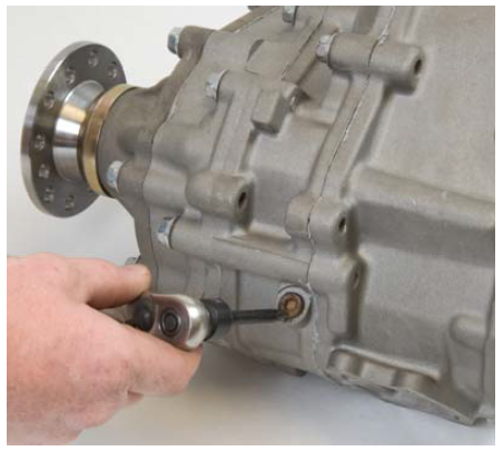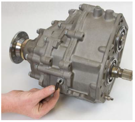 2. Remove the detent plug on the drivers side of the t-case using a 6mm allen wrench.