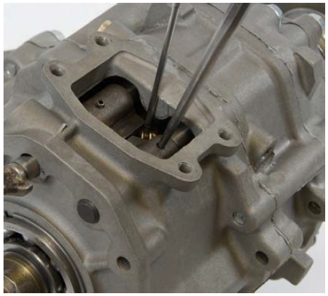 17. Insert the detent plug into the hole using a 6mm allen wrench. Turn the t-case back over.